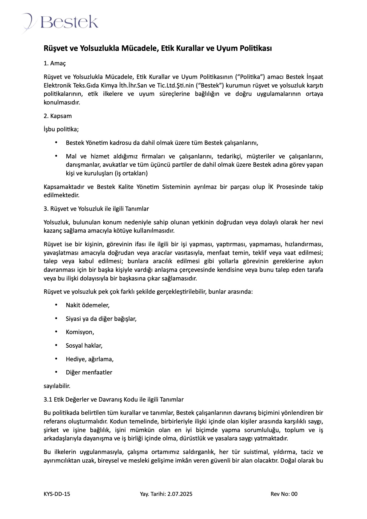 KYS-DD-03 YAYIN TARİHİ: 5.01.2021    REVİZYON NO: 00       REVİZYON TARİHİ: –